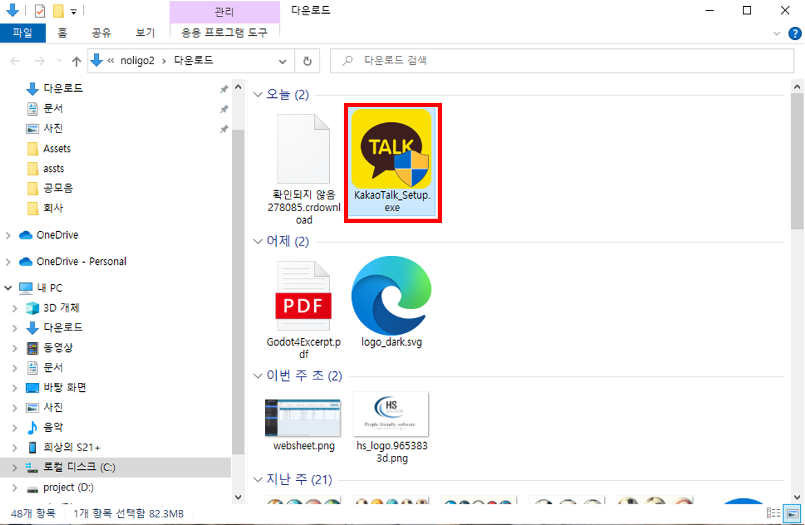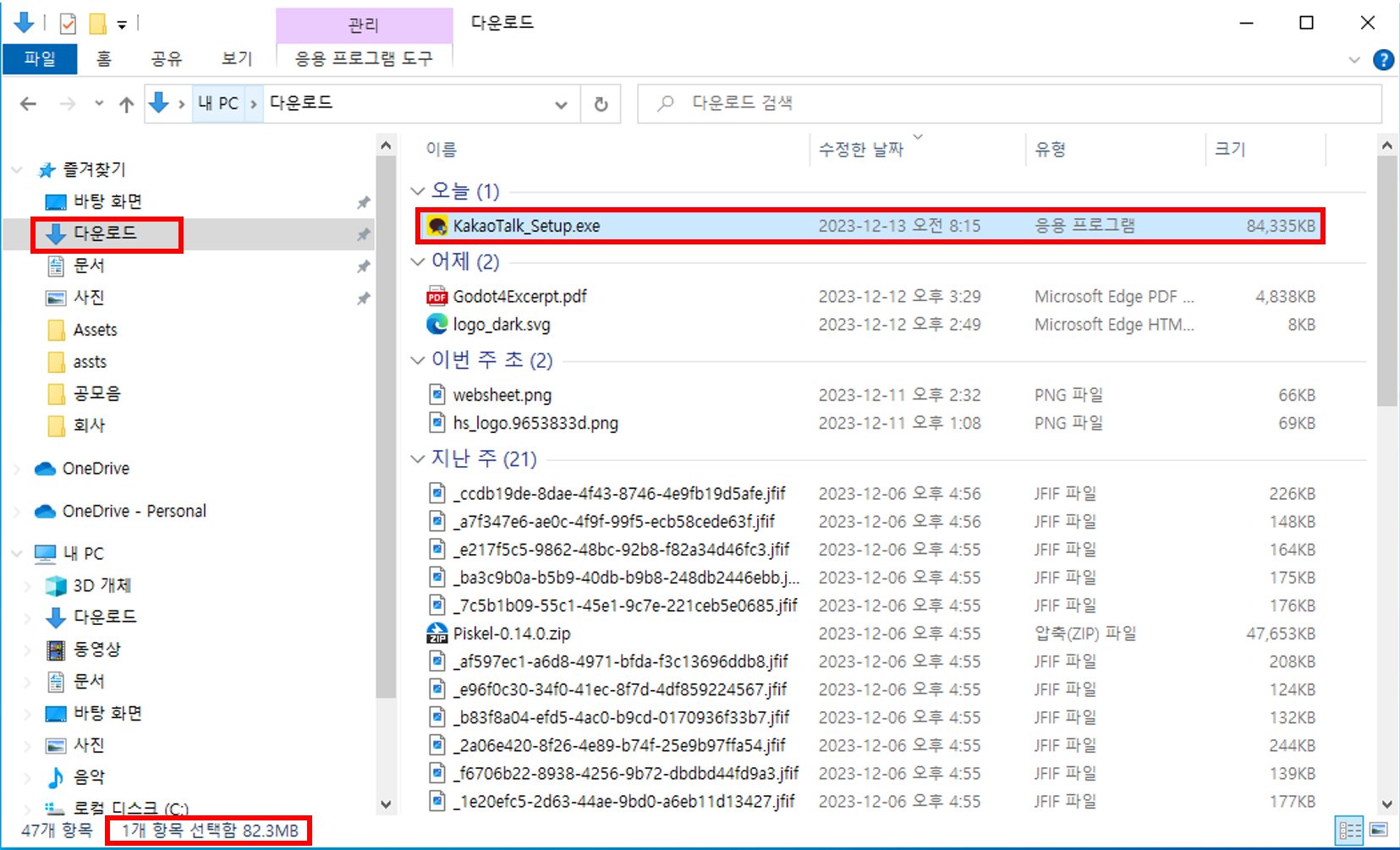 우리가 카카오톡 설치 파일을 다운로드 받았는데요.