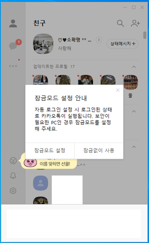 위 이미지는 제 윈도우 화면의 카카오톡 화면을 캡쳐 한건데요.