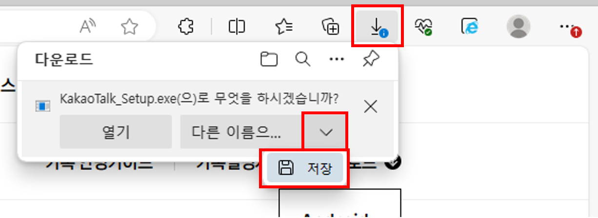 '다른 이름으...' 옆에 아래 화살표 버튼을 클릭하면 '저장'이라는 팝업이 표현됩니다. 클릭해 주세요